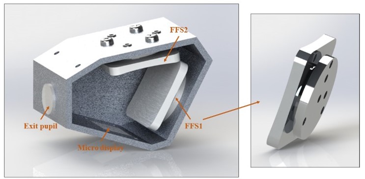 我們開發出一種結合慢刀路徑的光學探針測試與補償加工方法,實現不依賴B軸、大動態范圍、亞微米精度的在線測試與補償加工,極大的提高了自由曲面加工和檢測精度,100mm口徑自由曲面的面形精度優于PV 0.5μm。